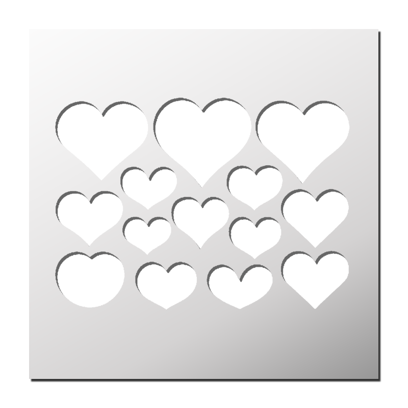 Pochoir Coeurs disponible en différentes matières et tailles pour s’adapter à chacun de vos projets. Découvrez dès maintenant notre sélection exclusive de pochoirs personnalisés et laissez libre cours à votre imagination !