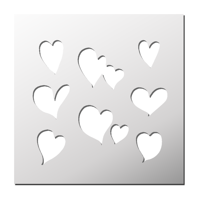 Pochoir Coeurs disponible en différentes matières et tailles pour s’adapter à chacun de vos projets. Découvrez dès maintenant notre sélection exclusive de pochoirs personnalisés et laissez libre cours à votre imagination !