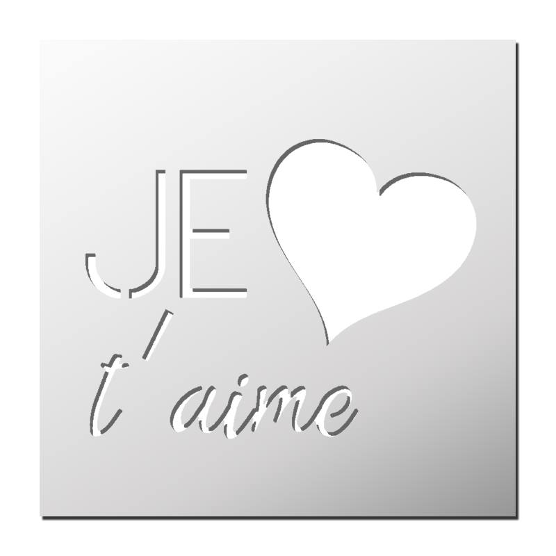 Pochoir JE t'aime disponible en différentes matières et tailles pour s’adapter à chacun de vos projets. Découvrez dès maintenant notre sélection exclusive de pochoirs personnalisés et laissez libre cours à votre imagination !