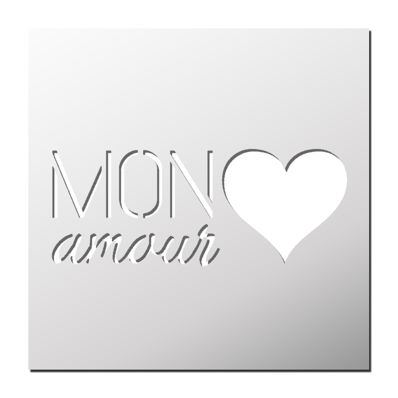 Pochoir MON Amour disponible en différentes matières et tailles pour s’adapter à chacun de vos projets. Découvrez dès maintenant notre sélection exclusive de pochoirs personnalisés et laissez libre cours à votre imagination !